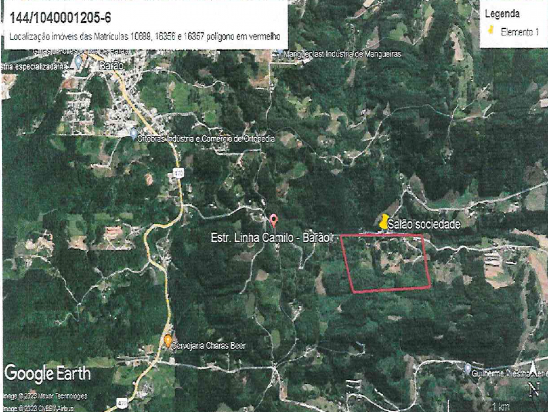 A) IMÓVEL: Uma área de terras, situada em Linha Francesa, município de Barão, com a área de 240.000,00m² (duzentos e quarenta mil metros quadrados), confrontando-se: ao Norte, com Ivo T. Lutz; ao Sul, com Marino Veifenberg e Lothario Mensch; ao Leste, com Germano Wilmsen; e, ao Oeste, com Lothario Mensch e Arno Sauthier, conforme descrito na Matrícula nº 10.689 do Registro de Imóveis de Carlos Barbosa/RS. Dentro da área maior, a fração ideal e condômina a ser leiloada é de apenas 7.836,94 m², área de terras pertencente ao executado Nelson Luis Mensch, Valor de avaliação: R$ 59.750,00 em 14/02/2023, atualizado para o valor de R$ 77.540,08 em 07/08/2025.